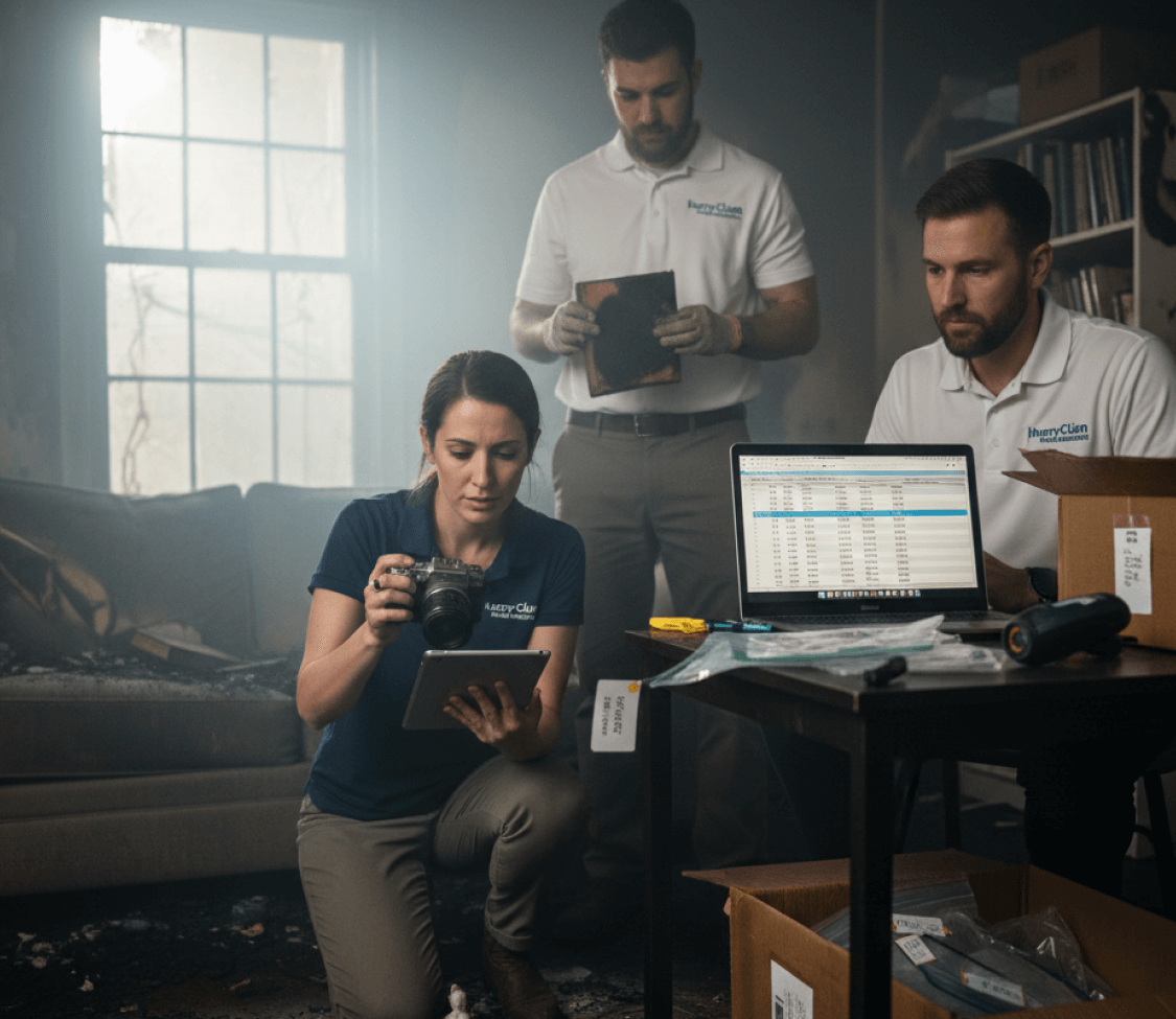 A comprehensive personal property inventory is created through extensive on-site documentation of all affected contents within a home or business.